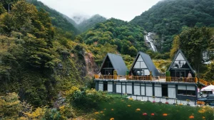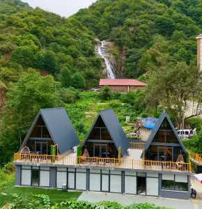 Çayeli’nin en görkemli doğa harikalarından biri olan Ağaran Şelalesi’nin yanı başında, suyun sesi ve ahşabın kokusuyla harmanlanmış bir huzur noktası: Ağaran Wooden Houses.