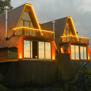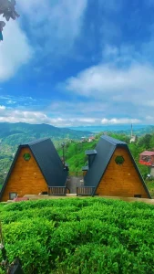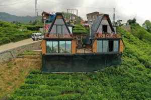 Çayeli’nin dünyaca ünlü o muazzam çay bahçelerinin kalbinde, görsel bir şölen sunan bir durak: Çeçeva Çayluk Süt Bungalov.