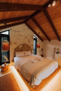 Fırtına Vadisi’nin en hakim noktalarından birinde yer alan DDs Roof, modern üçgen mimarisi ve tamamen camdan oluşan ön cephesiyle misafirlerine kesintisiz bir manzara sunuyor. Bulutların üzerinde uyanacağınız, şömine başında vadinin sisli dansını izleyebileceğiniz bu özel durak, lüks konforu doğanın kalbine taşıyor.