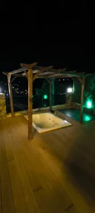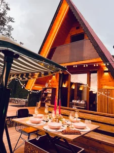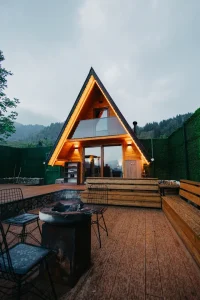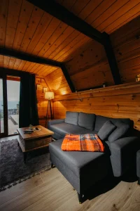 • Modern ve Sıcak Tasarım: İç mekanda kullanılan tamamen doğal ahşap doku, jakuzi ve şömine seçenekleriyle birleşerek özellikle kış ve bahar aylarında unutulmaz bir atmosfer sunar.